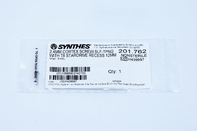 - Synthes 201.762 2.4mm Cortex Screw Self-Tapping With T8 Stardrive Recess 12mm