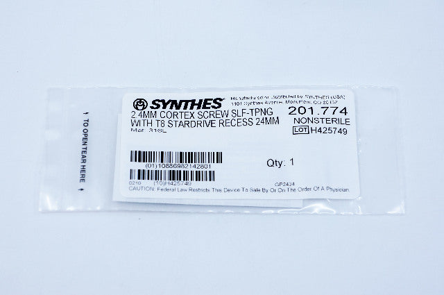 - Synthes 201.774 2.4mm Cortex Screw Self-Tapping With T8 Stardrive Recess 24mm