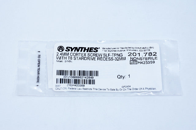 - Synthes 201.782 2.4mm Cortex Screw Self-Tapping With T8 Stardrive Recess 32mm