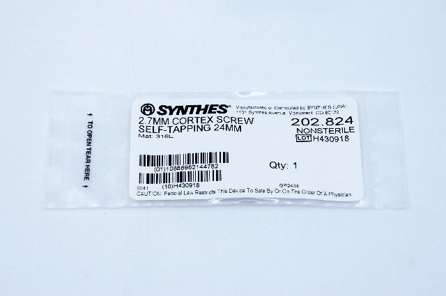 - Synthes 202.824 2.7mm Cortex Screw Self-Tapping 24mm