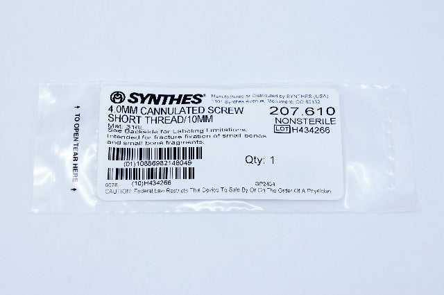 - Synthes 207.610 4.0mm Cannulated Screw Short Thread 10mm