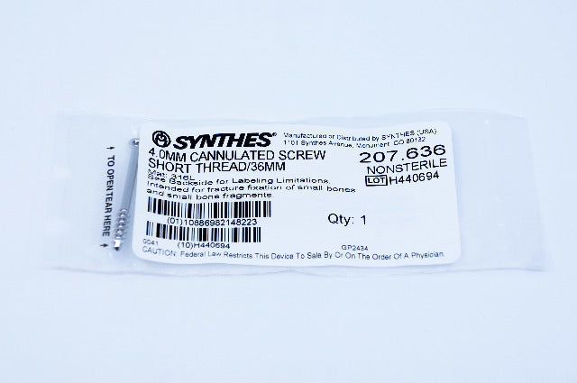- Synthes 207.636 4.0mm Cannulated Screw Short Thread/36mm