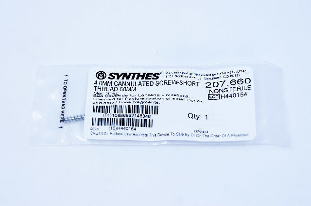- Synthes 207.660 4.0mm Cannulated Screw-Short Thread 60mm