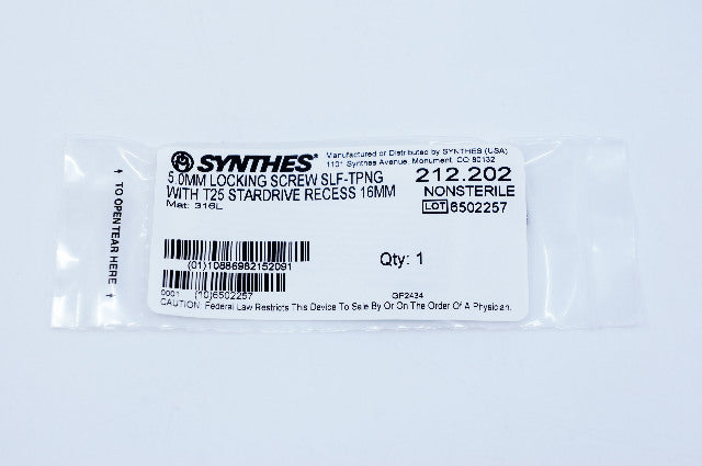 - Synthes 212.202 5.0mm Locking Screw Self-Tapping With T25 Stardrive Recess 16mm