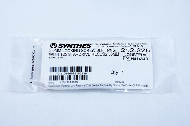 - Synthes 212.226 5.0mm Locking Screw Self-Tapping With T25 Stardrive Recess 85mm