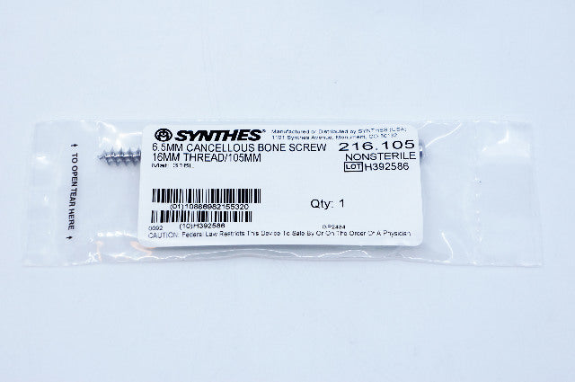 - Synthes 216.105 6.5mm Cancellous Bone Screw 16mm Thread/105mm