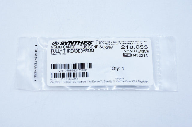 - Synthes 218.055 6.5mm Cancellous Bone Screw Fully Threaded/55mm