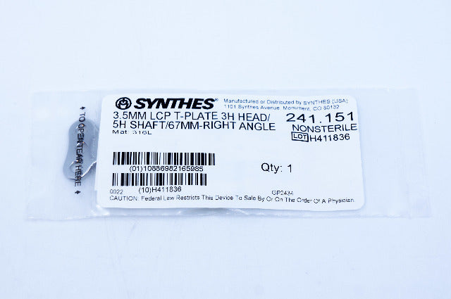 - Synthes 241.151 3.5mm LCP T-Plate 3H Head / 5H Shaft / 67mm - Right Angle