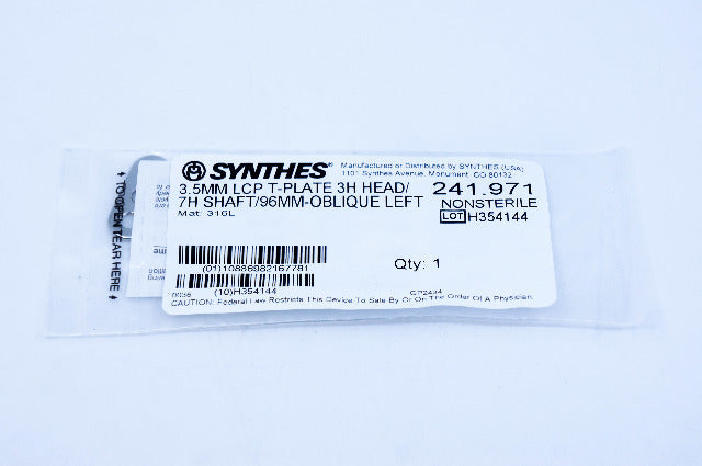 - Synthes 241.971 LCP T-Plate 3H Head / 7H Shaft / 96mm - Oblique Left