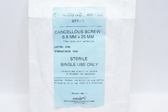 - Arthrex AR-1355 Cancellous Screw 6.5mm x 25mm