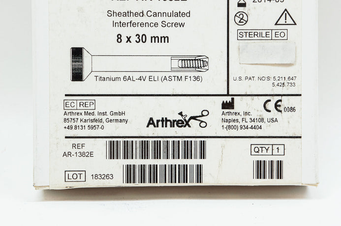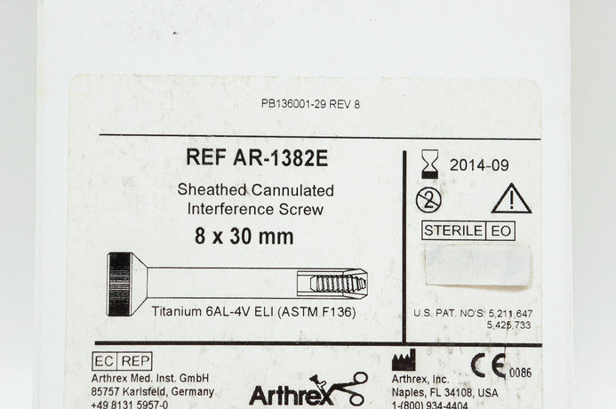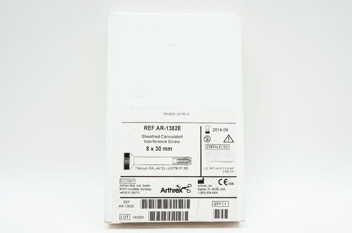 - Arthrex AR-1382E Sheathed Cannulated Interference Screw 8 x 30mm (x)