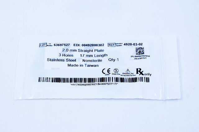 - Zimmer 4920-03-02 2.0mm Straight Plate, 3 Holes, 17mm Length