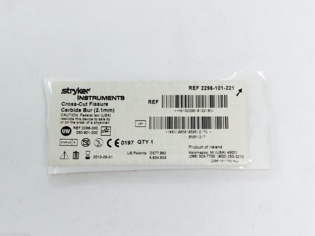 Stryker Cross-Cut Fissure Carbide Bur 2.1mm 2296-101-221 Item Past Expiration