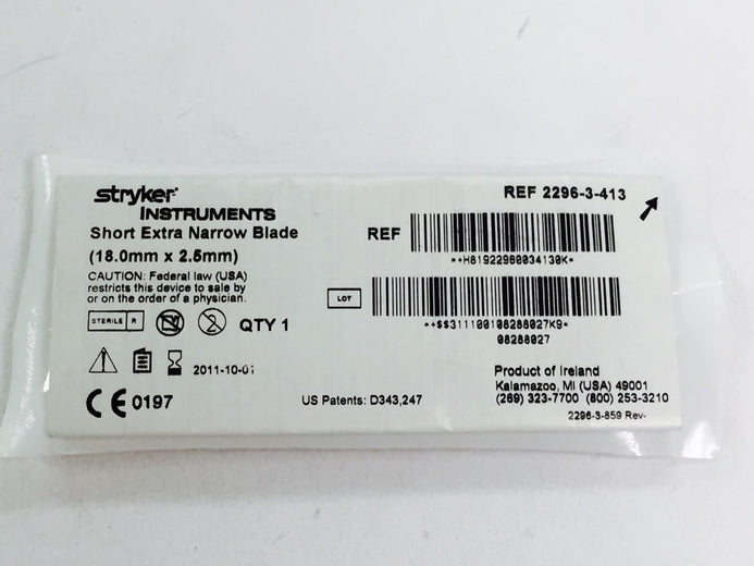 2296-3-413 ~ Stryker Short Extra Narrow Blade 18mm x 2.5mm (x)