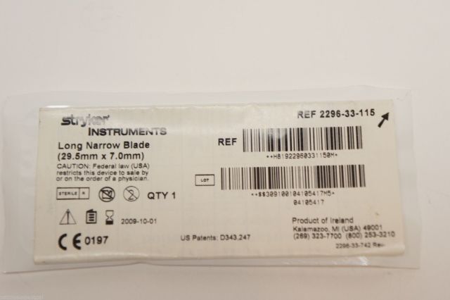 - 2296-33-115 ~ Stryker Long Narrow Blade 29.5mm x 7.0mm (x)