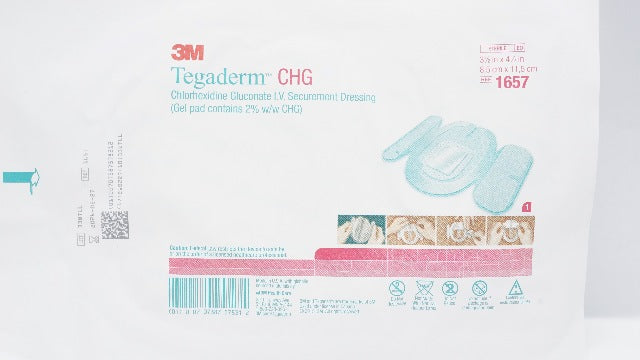 - 3M 1657 Tegaderm CHG Chlorhexidine Gluconate I.V. Dressing 3 1/2inch x 4 1/2inch