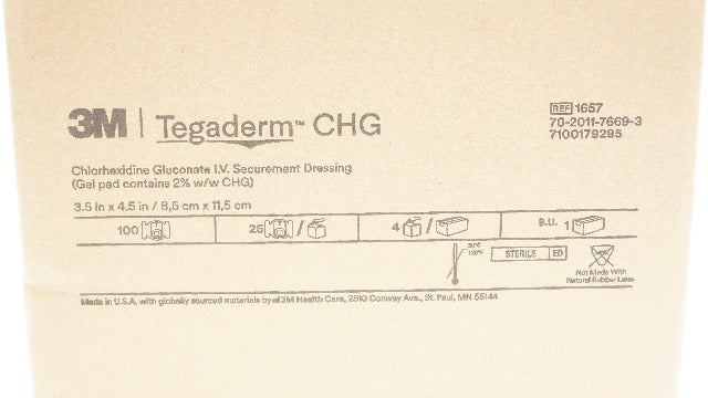 - 3M 1657 Tegaderm CHG I.V. Securement Dressing 3.5In x 4.5In - Box of 100