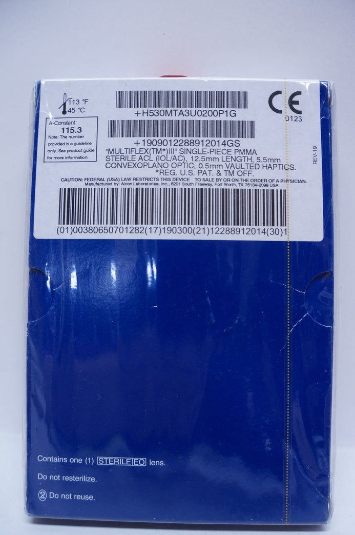 - Alcon MTA3U0 Multiflex III Single-Piece PMMA Sterile ACL, 12.5mm x 5.5mm 20D (x)