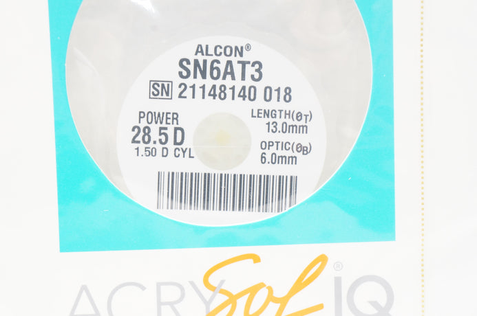 - Alcon SN6AT3 AcrySof IQ Toric Astigmatism 28.5D, Length 13.0mm, Optic 6.0mm (x)