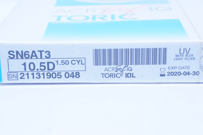 Alcon SN6AT3 ACRYSof IQ Toric Astigmatism IOL 10.5D, 1.50 CYL