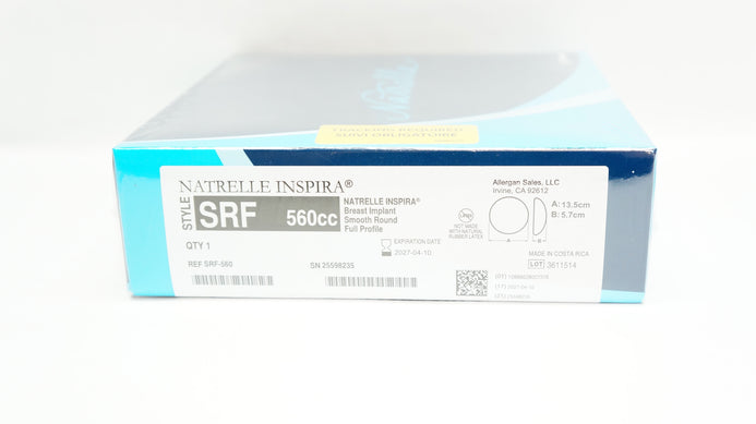 - Allergan SRF-560 Natrelle Inspira Breast Implant, Round, Full Profile, 560cc