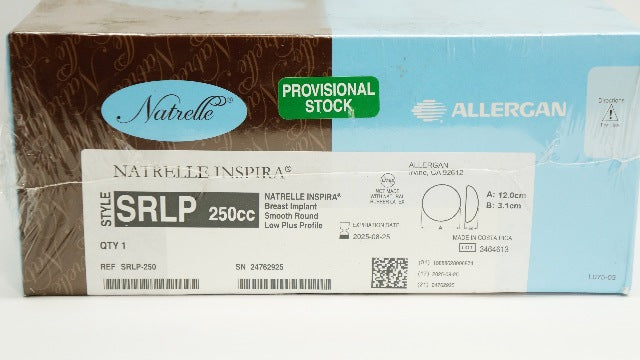 - Allergan SRLP-250 Natrelle Inspira Breast Implant Smooth Round Low Plus Profile 250cc