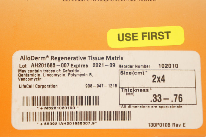 - Allergon 102010 AlloDerm Regenerative Tissue Matrix 2x4cm .33 -.76inch (x)