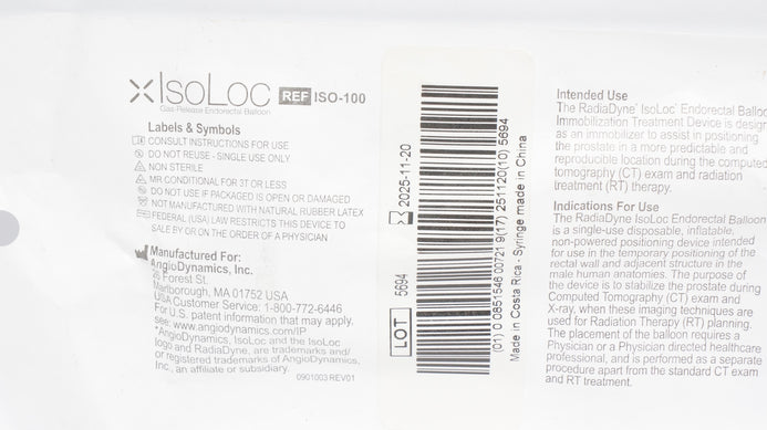 - AngioDynamics ISO-100 IsoLoc Gas-Release Endorectal Balloon (x)
