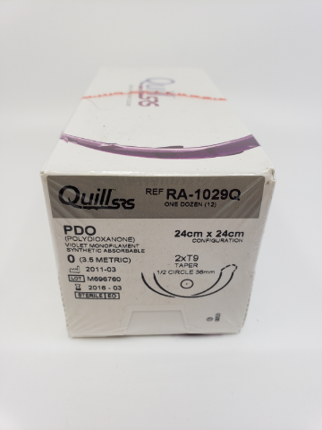 - Angiotech RA-1029Q Quill Knotless PDO Size 0 24cm x 24cm (x) - Box of 12