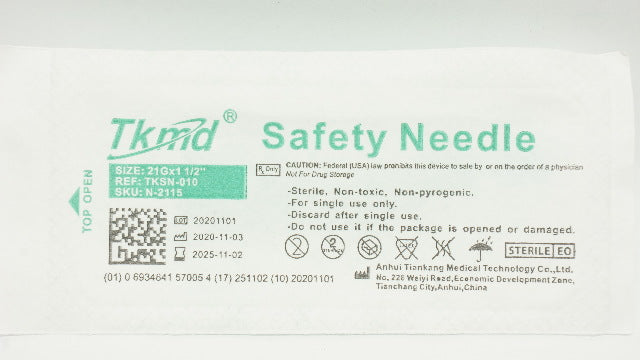 Anhui Tiankang Medical TKSN-010 Tkmd Safety Ndle 21G x 1-1/2 inch