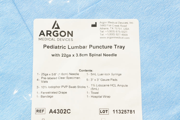 - Argon A4302C Pediatric Lumbar Puncture Tray With 22 Ga x 38 cm Spinal Ndle.
