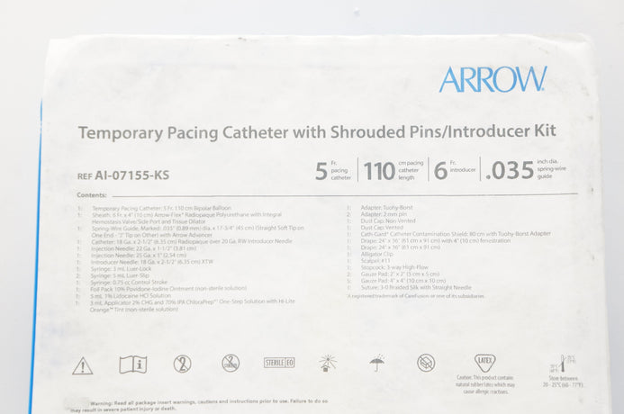 Arrow AI-07155-KS Temporary Pacing Catheter with Shrouded Pin/Introducer Kit 5Fr x 6 Fr x .035inch x 110cm
