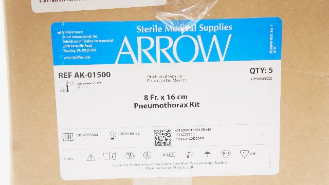 - Arrow AK-01500 Pneumothorax Kit 8Fr x 16cm Length (x) - Box of 5