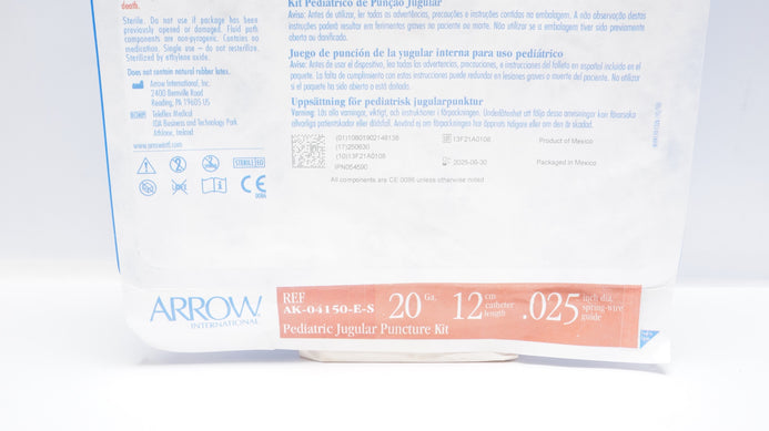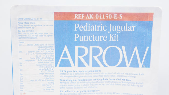 - Arrow AK-04150-E-S Pediatric Jugular Puncture Kit 20Ga x 12cm x .025inch