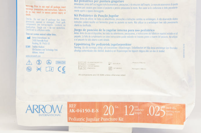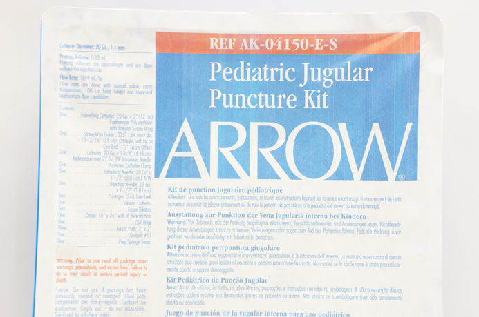 - Arrow AK-04150-E-S Pediatric Jugular Puncture Kit 20Ga x 12cm x .025inch (x)