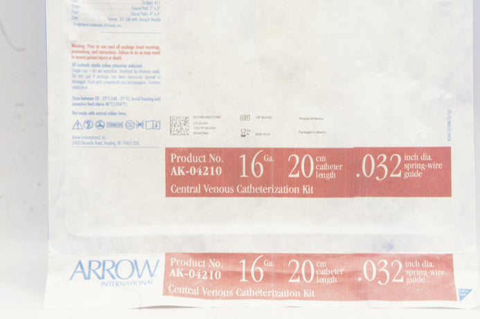 - Arrow AK-04210 Central Venous Cath. Kit 16Gax 20cm .032inch (x)