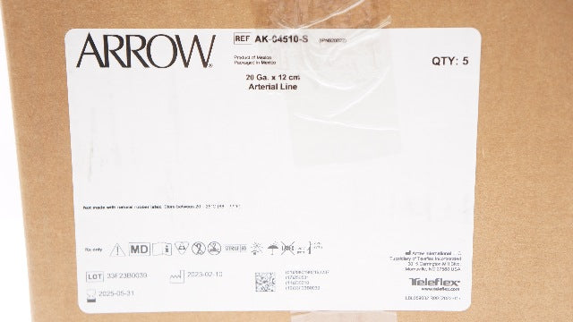 - Arrow AK-04510-S Arterial Line Kit 20Ga x 12cm x .025 inch - Case of 5