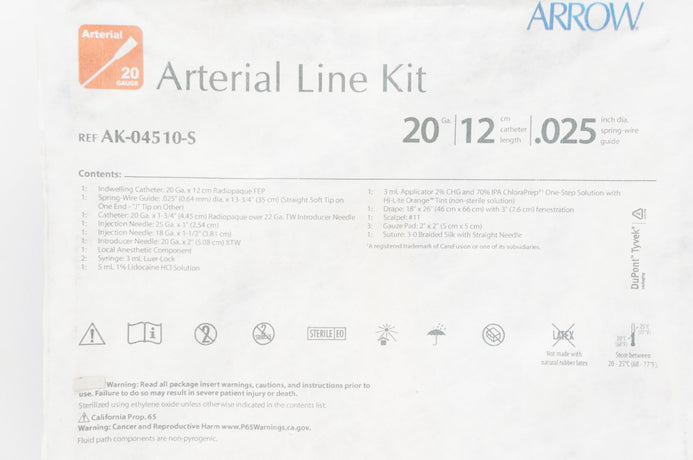 - Arrow AK-04510-S Arterial Line Kit 20Ga x 12cm x .025inch (x)