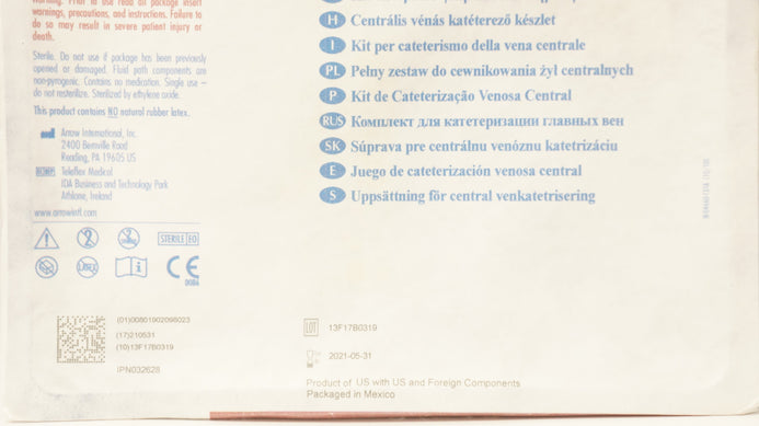 - Arrow AK-04660-S Central Venous Cath. Kit 24Ga x 5inch , 0.10mL (x)