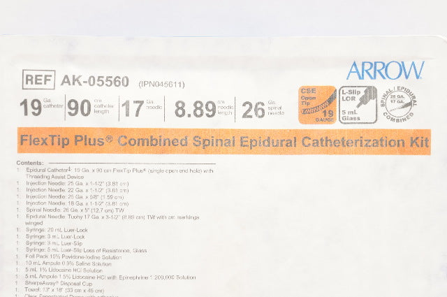 - Arrow AK-05560 FlexTip Plus Combined Spinal Epidural Catheterization Kit 19G (x)