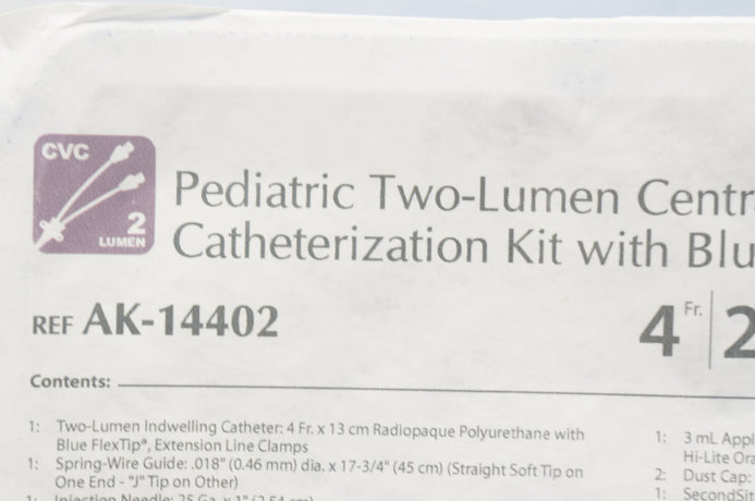 - Arrow AK-14402 Pediatric Two-Lumen Central Venous Catheterization Kit 4Fr