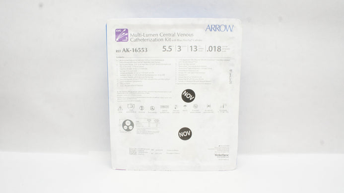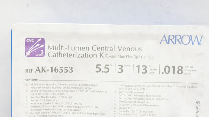 - Arrow AK-16553 Multi-Lumen Central Venous Cath. Kit 5.5Fr x 13cm x .018inch (x)