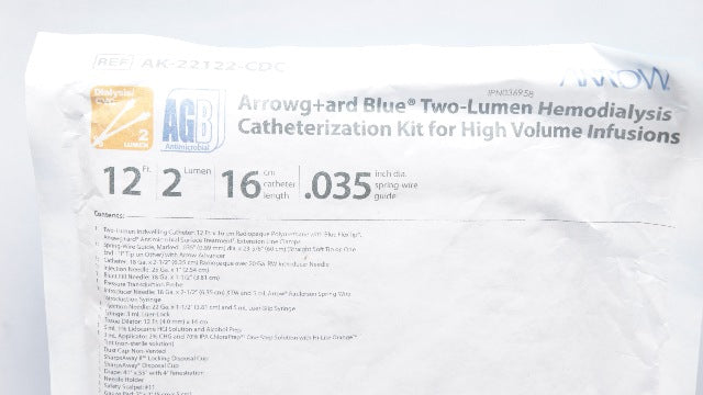 - Arrow AK-22122-CDC Arrowgard Blue Hemodialysis Catheterization Kit 12Fr. (x)
