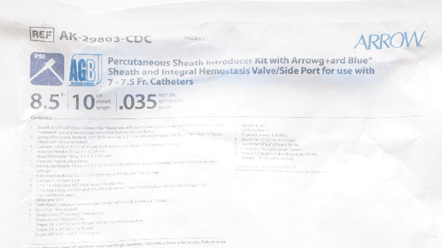- Arrow AK-29803-CDC Arrowgard Blue PSI Kit w/Caths. 8.5Fr. x 10cm x 0.35 inch (x)