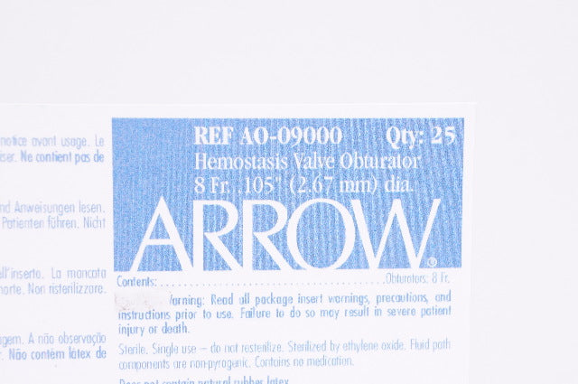 - Arrow AO-09000 Hemostasis Valve Obturator 8Fr .105in. dia. - Box of 25