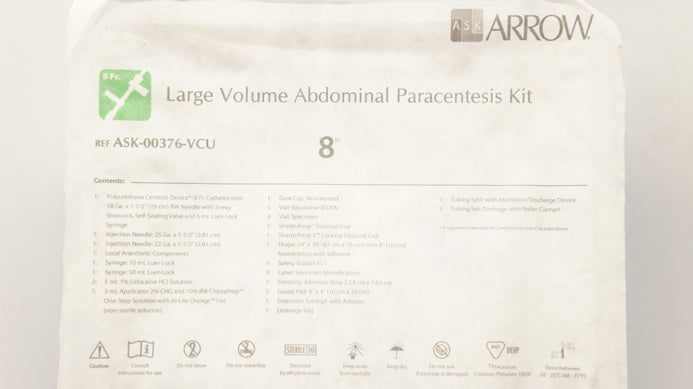 - Arrow ASK-00376-VCU Large Volume Abdominal Pracentesis Kit 8Fr x 18Ga x 71/2inch
