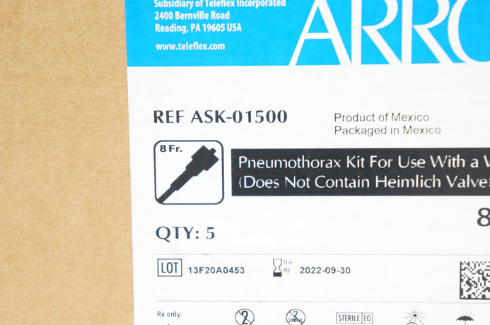 - Arrow ASK-01500 Pneumothorax Kit For Use With a Water Seal System 8Fr - Case of 5