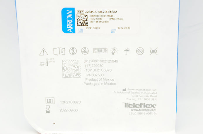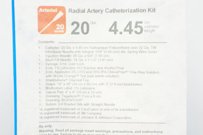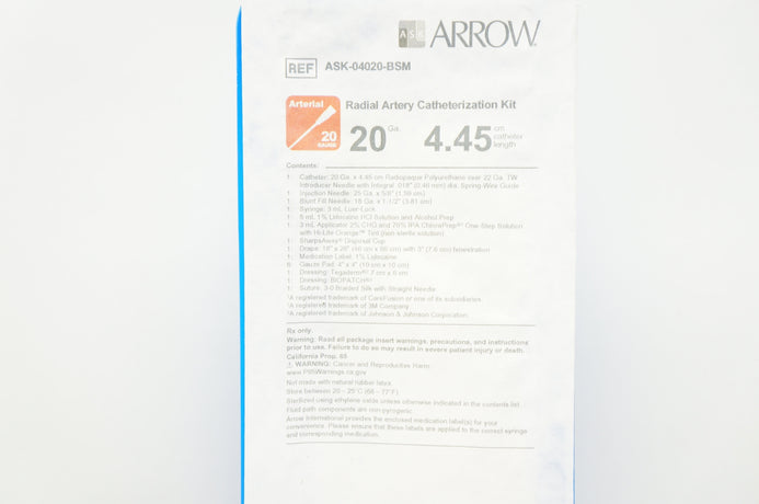 - Arrow ASK-04020-BSM Radial Artery Catheterization Kit 20 Ga 4.45 cm.