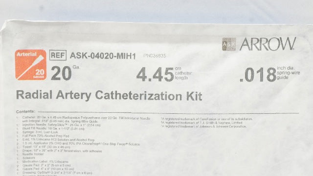 - Arrow ASK-04020-MIH1 Radial Artery Catheterization Kit 20Ga x 4.45cm (x)