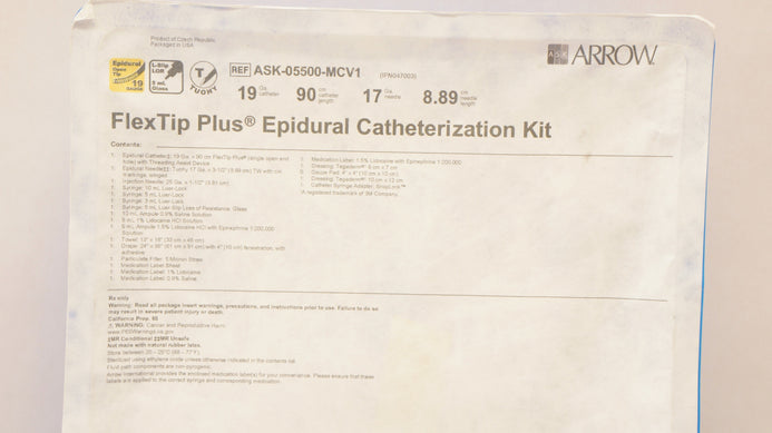 - Arrow ASK-05500-MCV1 Arrow FlexTip Plus Epidural Cath. Kit 19Ga x 90cm (x)